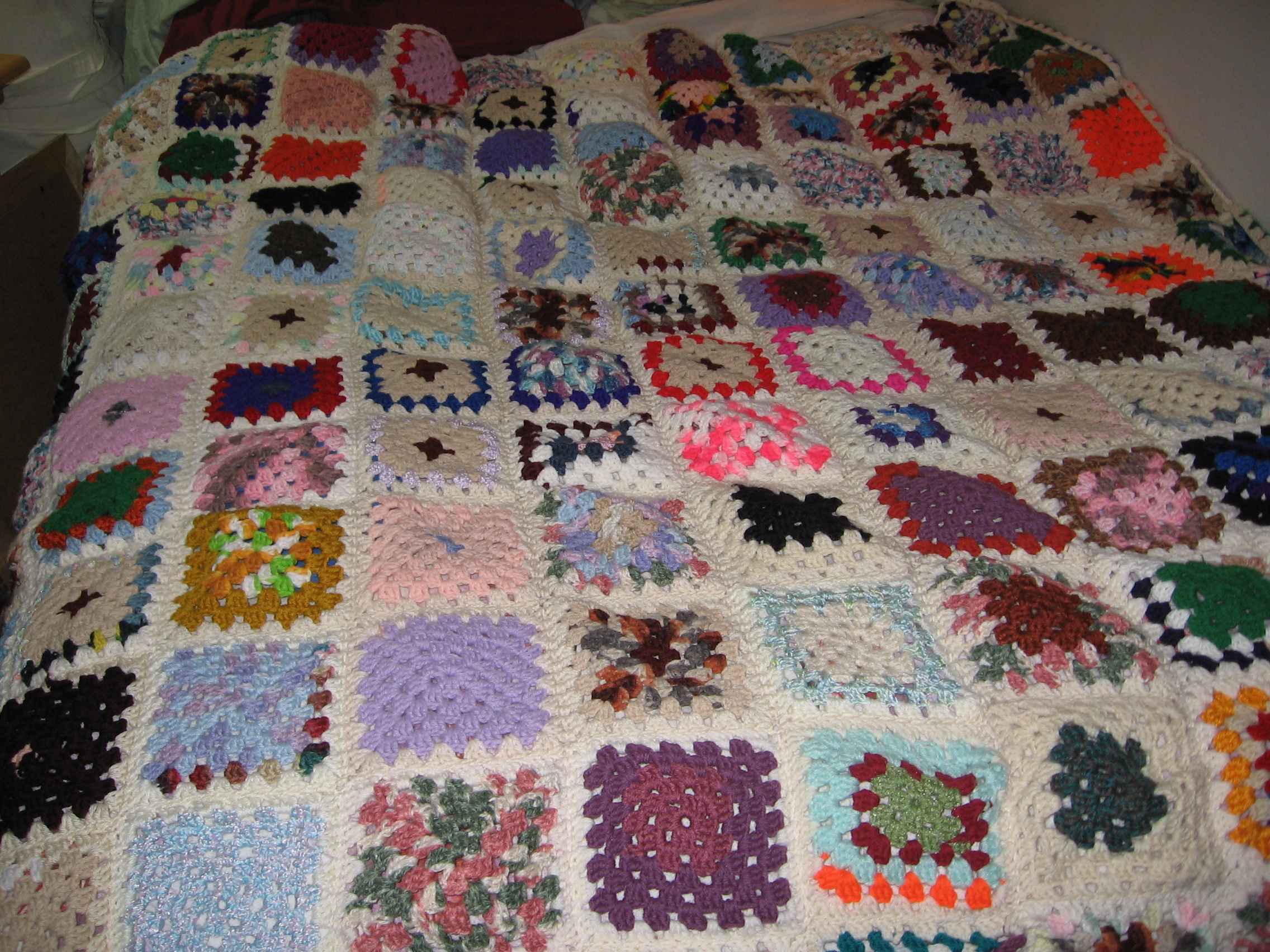 Yes, today I am working on those most maligned yarn objects of the 70’s. Why? Because last week at the Happy Hooker’s meetup (which, by the way, is tonight in the Altamonte Springs location!) Birgitt reminded us all that we needed to get our squares to her in order that they can be actually put together into a blanket for someone in need. DOH! Totally forgot about them, thus I am making granny squares. I can make them fast and almost without thinking (which is always the best way a crochet object should be made by me, as evidenced by previous blog posts), thus I may even get a few finished by the deadline. Oh, and did I mention that I had a bunch sitting around that just needed a few more rounds on them in order to be the correct size? They were leftovers from my brother’s Ugliest Afghan Ever and an aborted project. Is this cheating? I mean, I made most of them prior, so I did in fact make them, just not right now…..