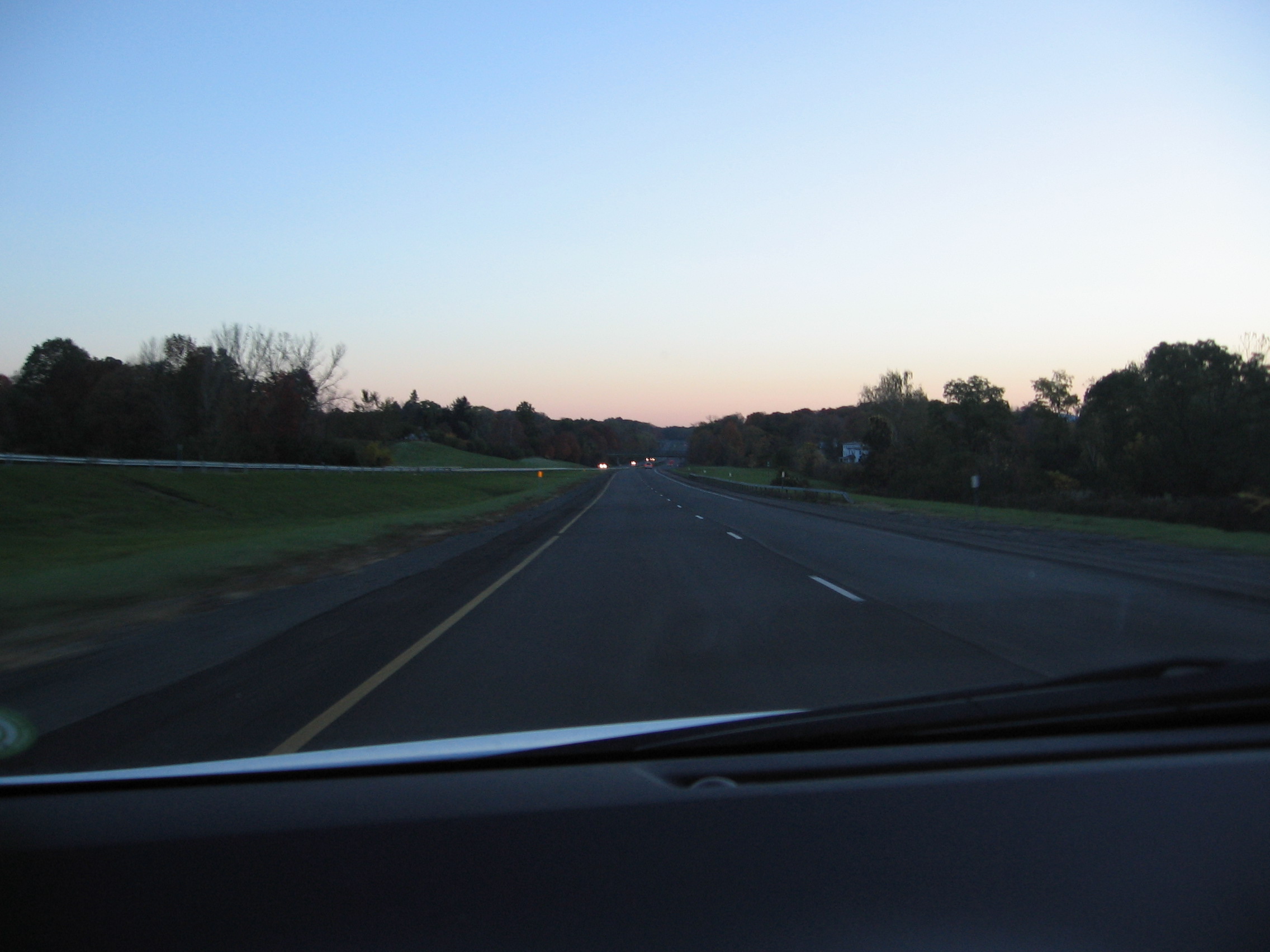 I left the muggle in-law’s house today at around 5:30-ish.  The sun was still a ways from being up, let alone useful, so I took it easy initially on the speed.  There are a LOT of deer in New Jersey and New York and I am in a very pretty rental.  On my way out of the neighborhood, I saw a very bushy, foxy fox finishing up a wild night out on the town.  I took that as a good omen.