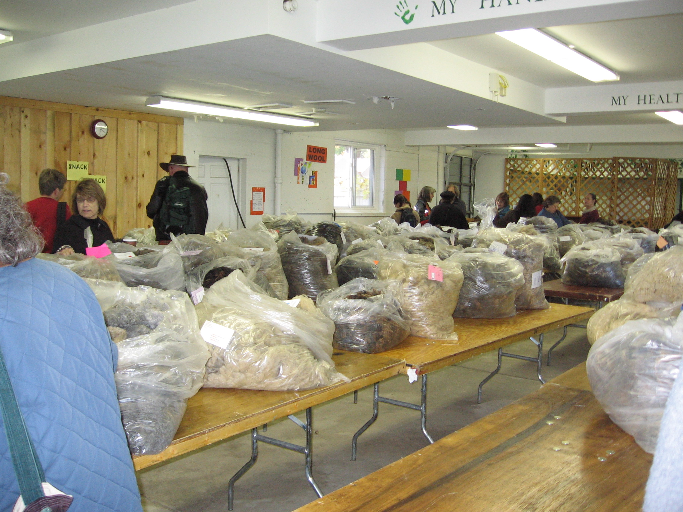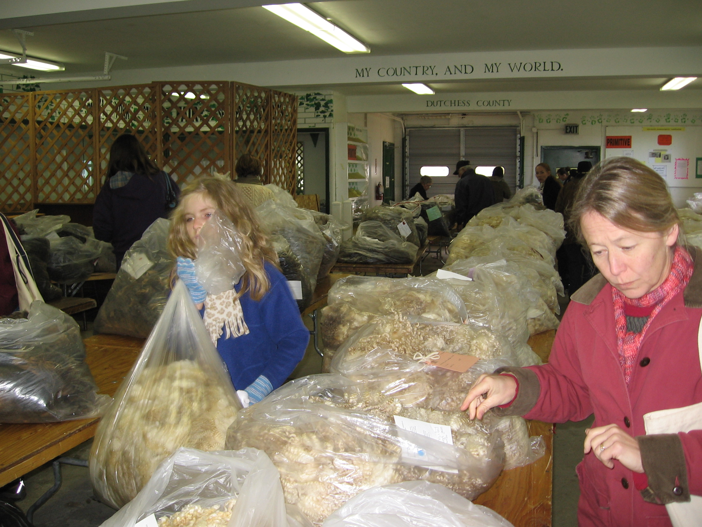 Not long after that I arrived at the fairgrounds and went to find my workshop.  It was on Selecting the Right Fleece and it was taught by Letty Klein who has judged fleeces for several years.  I was a really great class, she was very good at describing the things to look for to us in a detail and manner that made them make sense better than just reading a book could.  As I was going into my workshop I spotted Lily Chin going to teach hers!  I felt like I had just spotted crochet royalty!