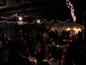 The Ravelry party was super fun.  It was, however, super cold as well.  I had broken down a bought a pair of “hybrid” mittens during the day (handmade, 100% alpaca, $18, don’t worry I will take a picture to explain the hybrid bit, just not now it is 1:30 in the morning and I am quite tired) so it wasn’t as bad as it could have been, but it was still pretty bad.  They had awesome goodie bags for us (once again, will picture later) and yummy treats and cupcakes and stuff.