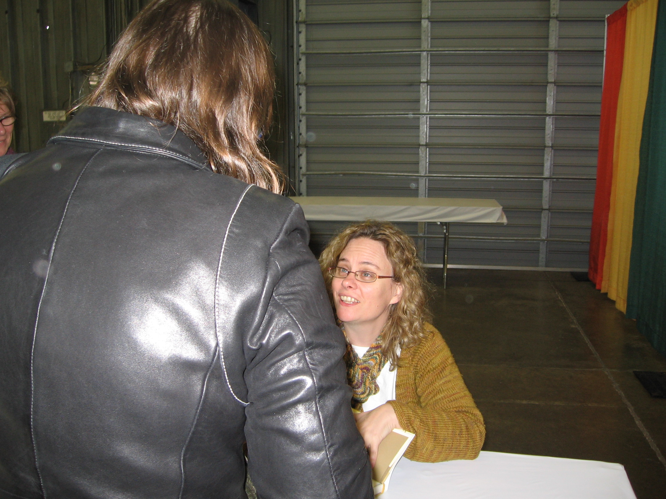 It was still there even though I didn’t get to get to it until well after they had opened because I was busy making a fool of myself in front of the Yarn Harlot. Yep, I got my book signed by Stephanie Pearl-McPhee herself! And I have the picture to prove it!