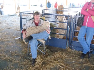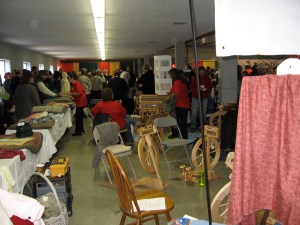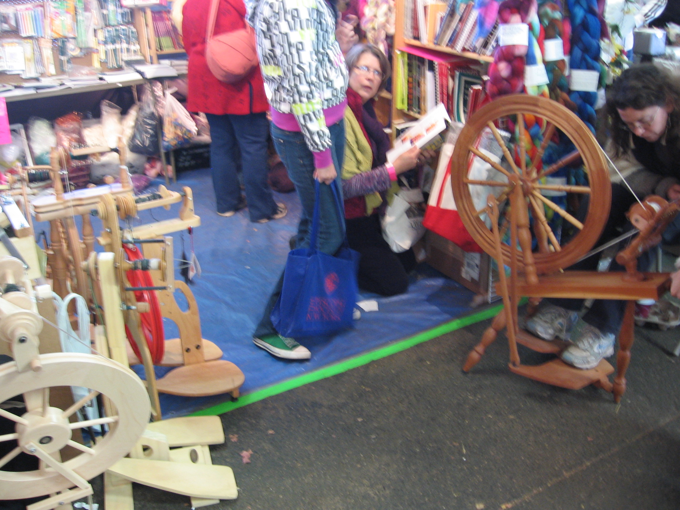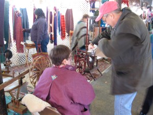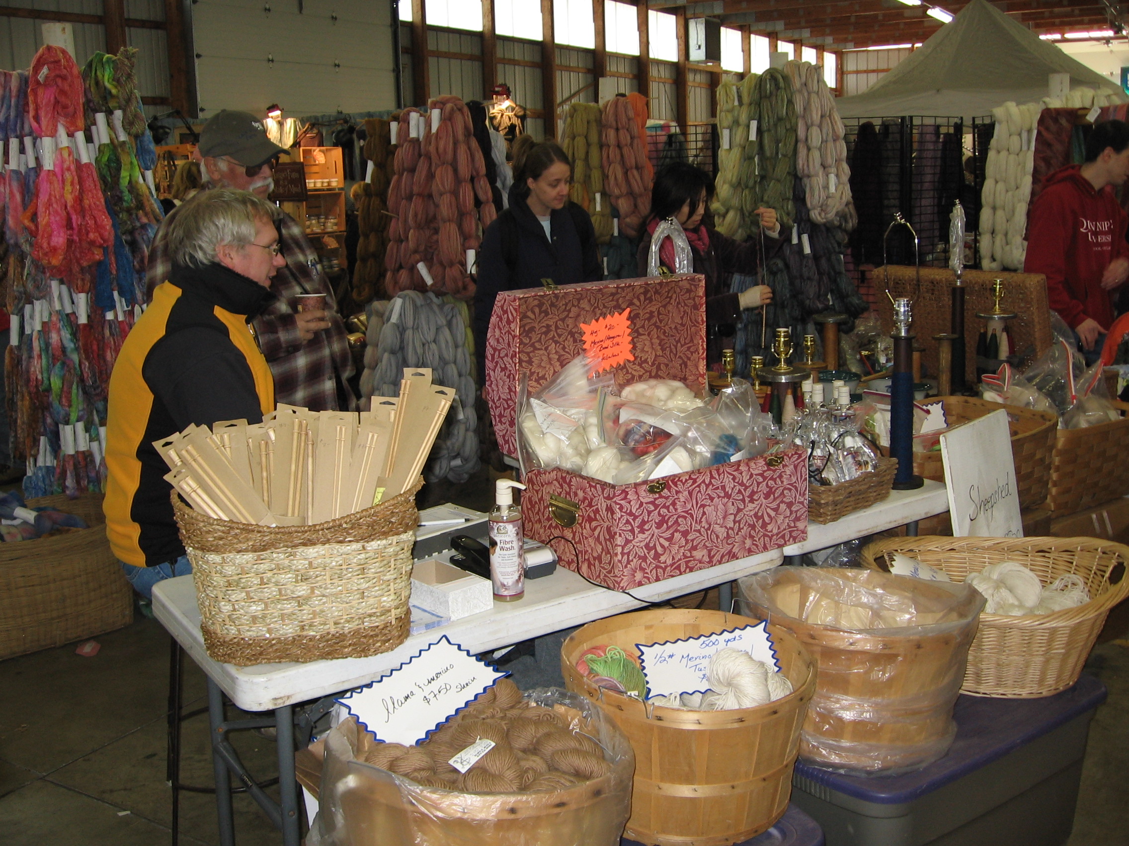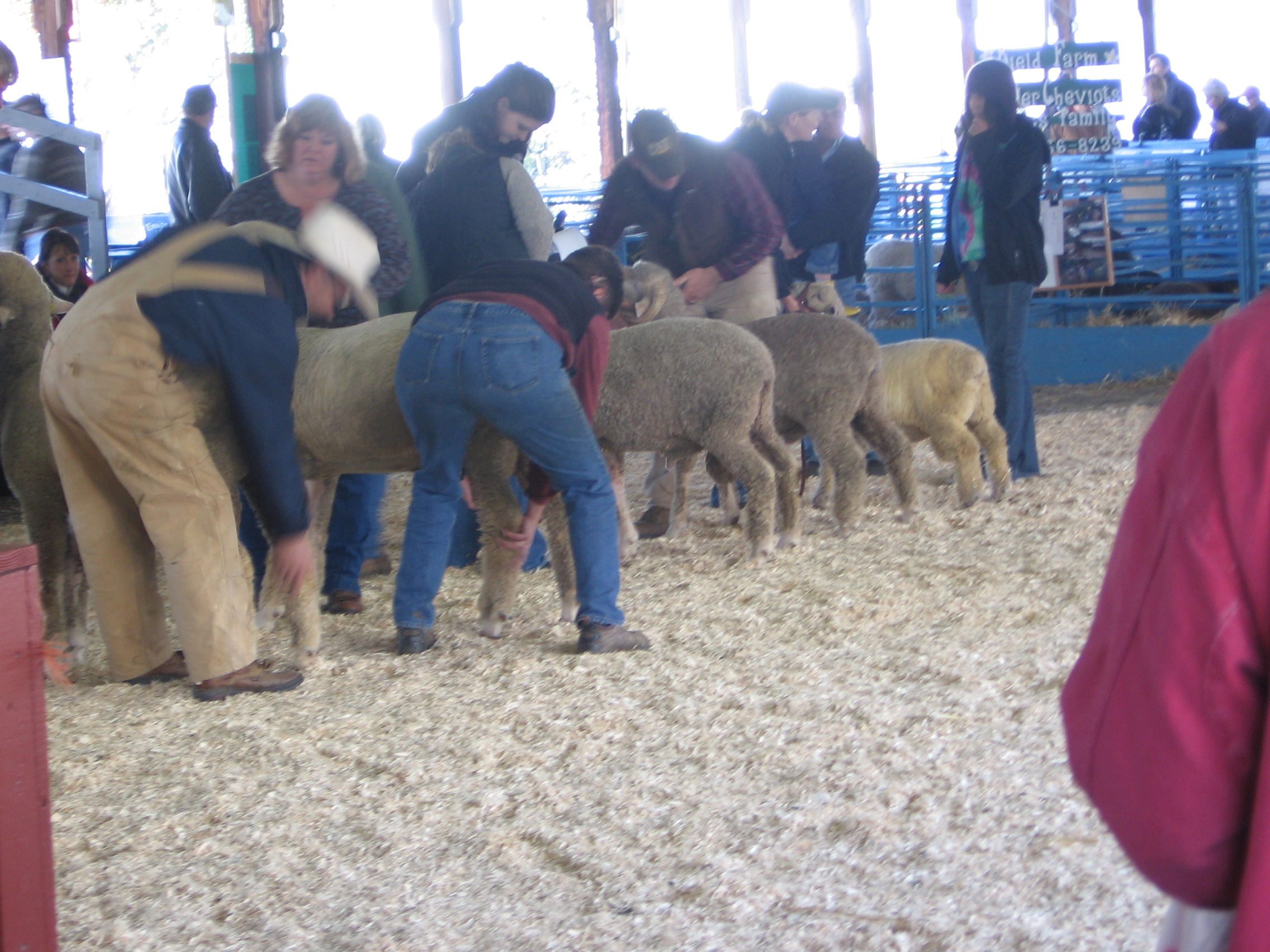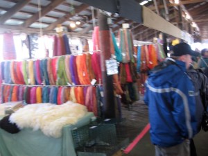 There was also a fleece to shawl contest which is missed most of. It is a team event where they take a washed fleece and spin it and then weave it into a shawl. It is very amusing to watch.