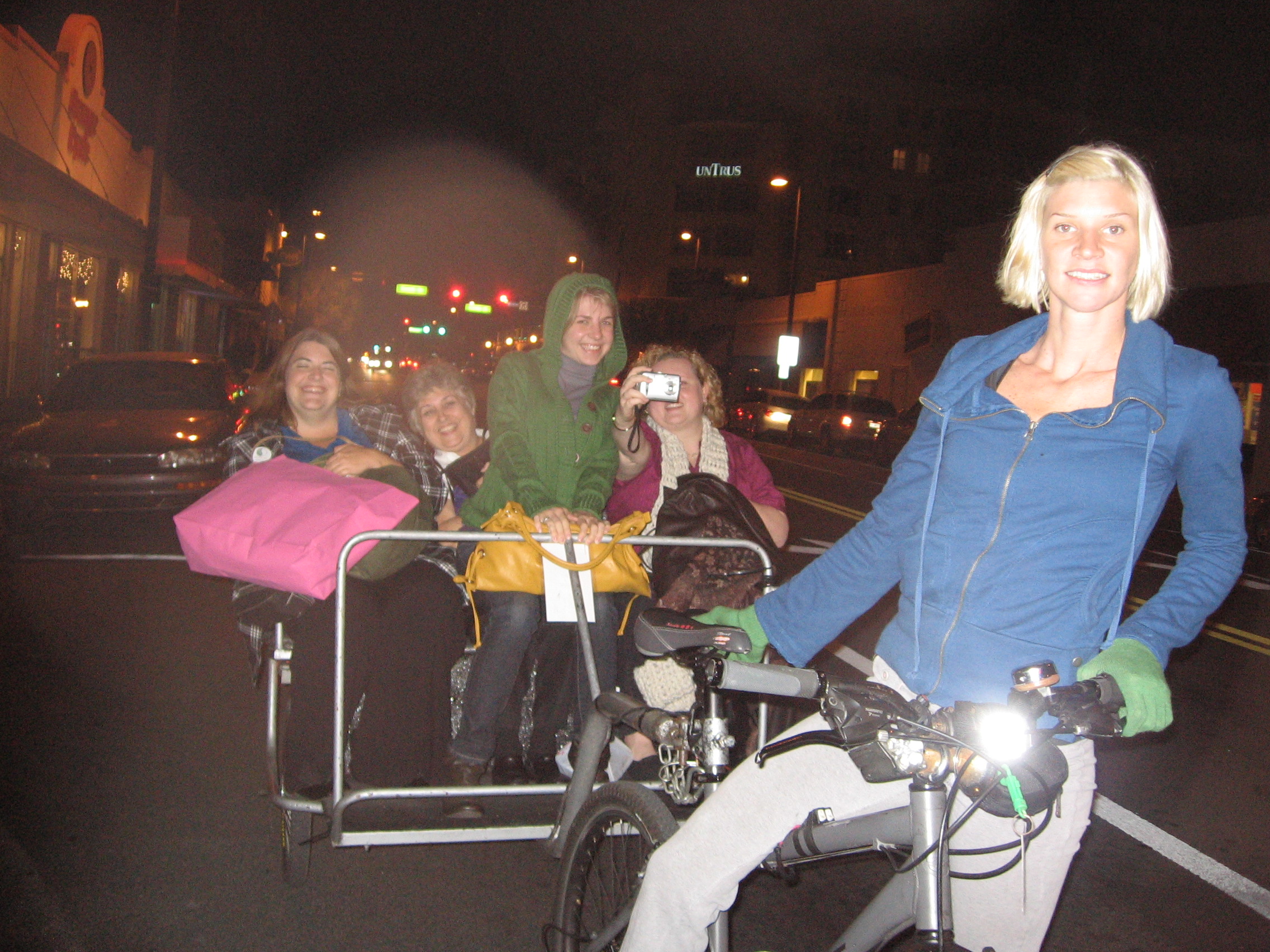 However, I have had some fun in my life of late. I got a tetanus shot on Wednesday! No, seriously, I went with the Hookers to Go Green for the Holidays. Sort of a holiday open house with 8 different businesses in College Park participating. They had pedicabs to transport people between the various businesses.