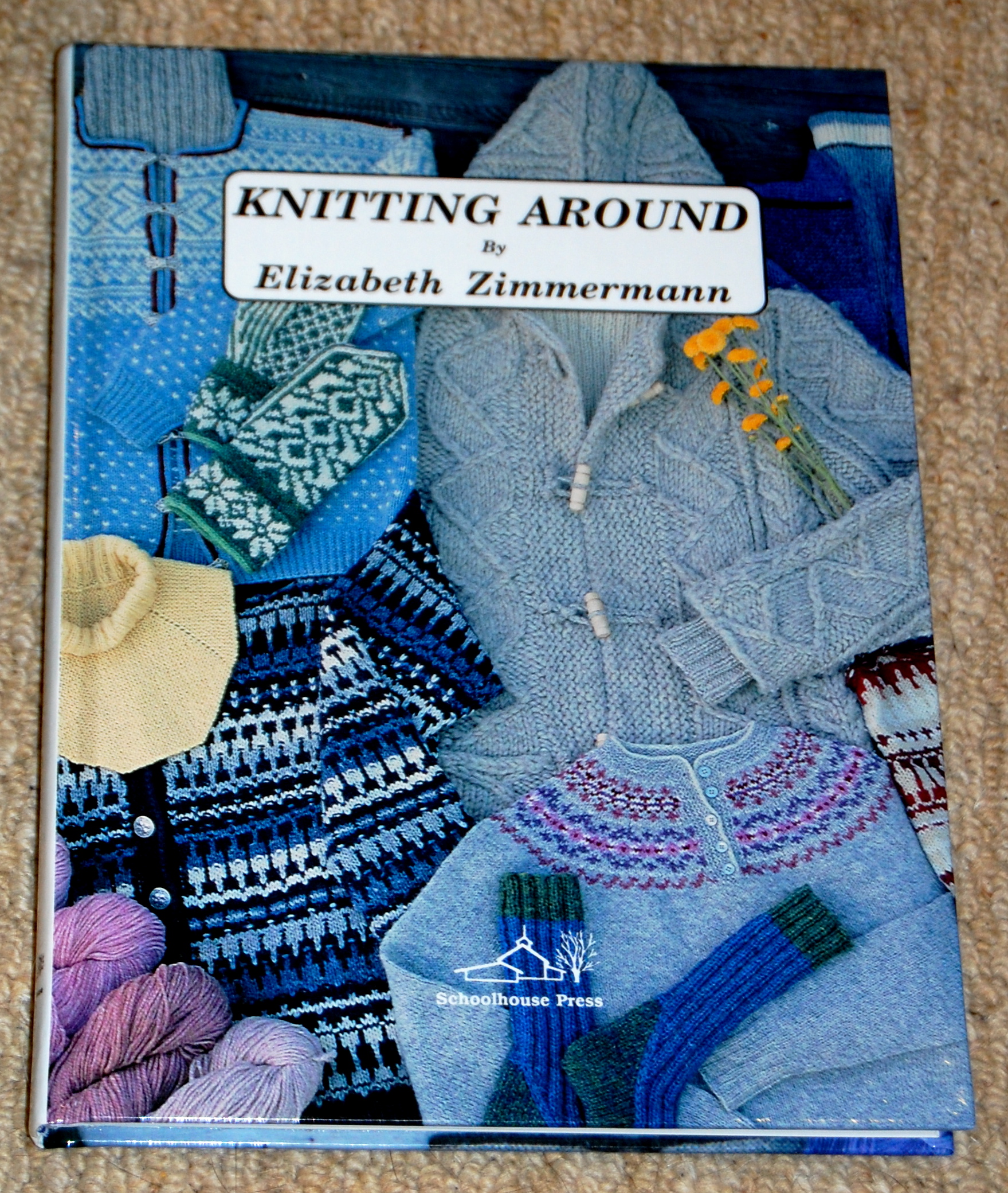 So, as I am sure that some of you astute readers of mine have noticed, this is one of the books that I got last month when I was in Chicago. I think that I now have all of Elizabeth Zimmermann’s published books. Knitting Around is part knitting book, part personal history with both parts deeply interwoven by EZ’s distinctive writing style which is one part instructional and many parts conversational. Reading any EZ book is like having a talk with a good friend about life and knitting. The patterns are all written in the EZ style, meaning that you can adapt them twenty ways to Sunday and more than likely, no two of any pattern will ever approach being the same. The reason for this is simple, EZ wanted knitters to master knitting and not patterns, a goal I am fully behind. As a person who approached knitting from a crochet background, it has always irked me how slavishly knitters seem tied to their patterns. But EZ tried to break that habit with some very unconventionally written knitting books.