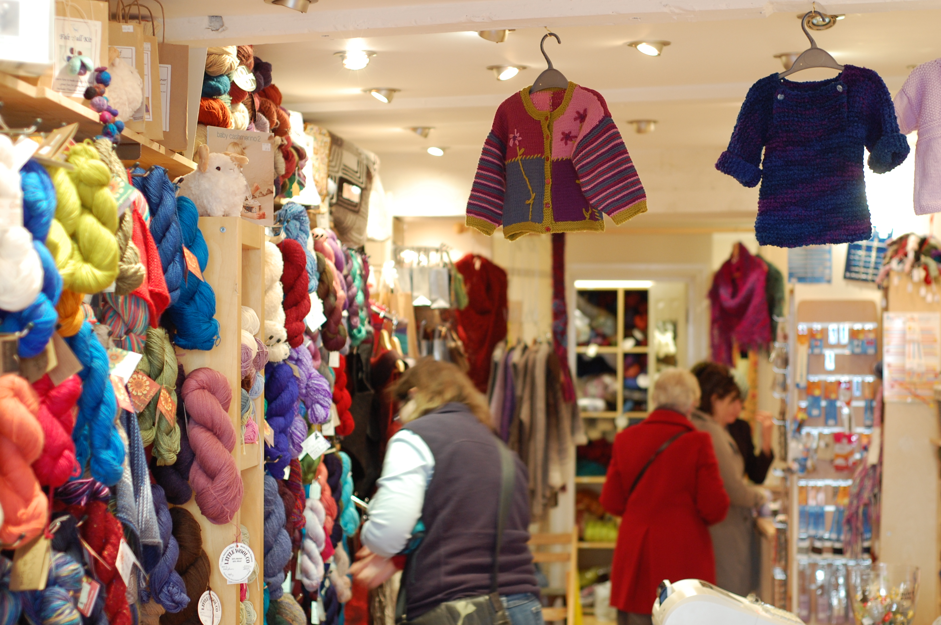 The lady working in it was quite helpful, going so far as to phone her boss to find out the answer to a question that she didn’t know the answer to. In addition to yarns, they also sold finished sweaters/jumpers as well as washed wool and silvers for spinning.