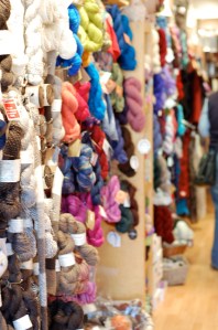 On Saturday the hubby and I, accompanied by Meara the wonder dog, set off for Henley on Thames. The purpose of this trip was to visit a new yarn shop, and to procrastinate on our spring cleaning for at least a few more hours. What we found when we got there was an absolutely lovely shop with a great selection of different yarns that aren’t found in every yarn shop in the UK. There are few things that annoy me more than when I go into a yarn shop here and find the same 5 brands of yarn, 3 of which I could pick-up at any John Lewis! Black Hills Yarns had a fantastic selection of their own brand of yarn, which is 100% undyed New Zealand wool in lovely natural colors as well as quite a few other small brands of yarn with fibers including mohair, silk, angora, cashmere and possum.