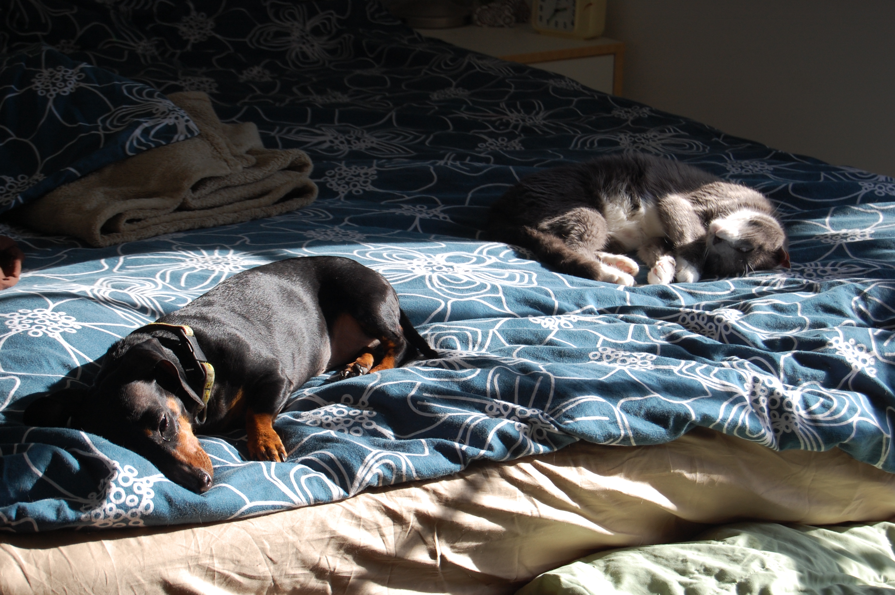 7.) Cats and dogs sleeping in rare English Spring sunshine.