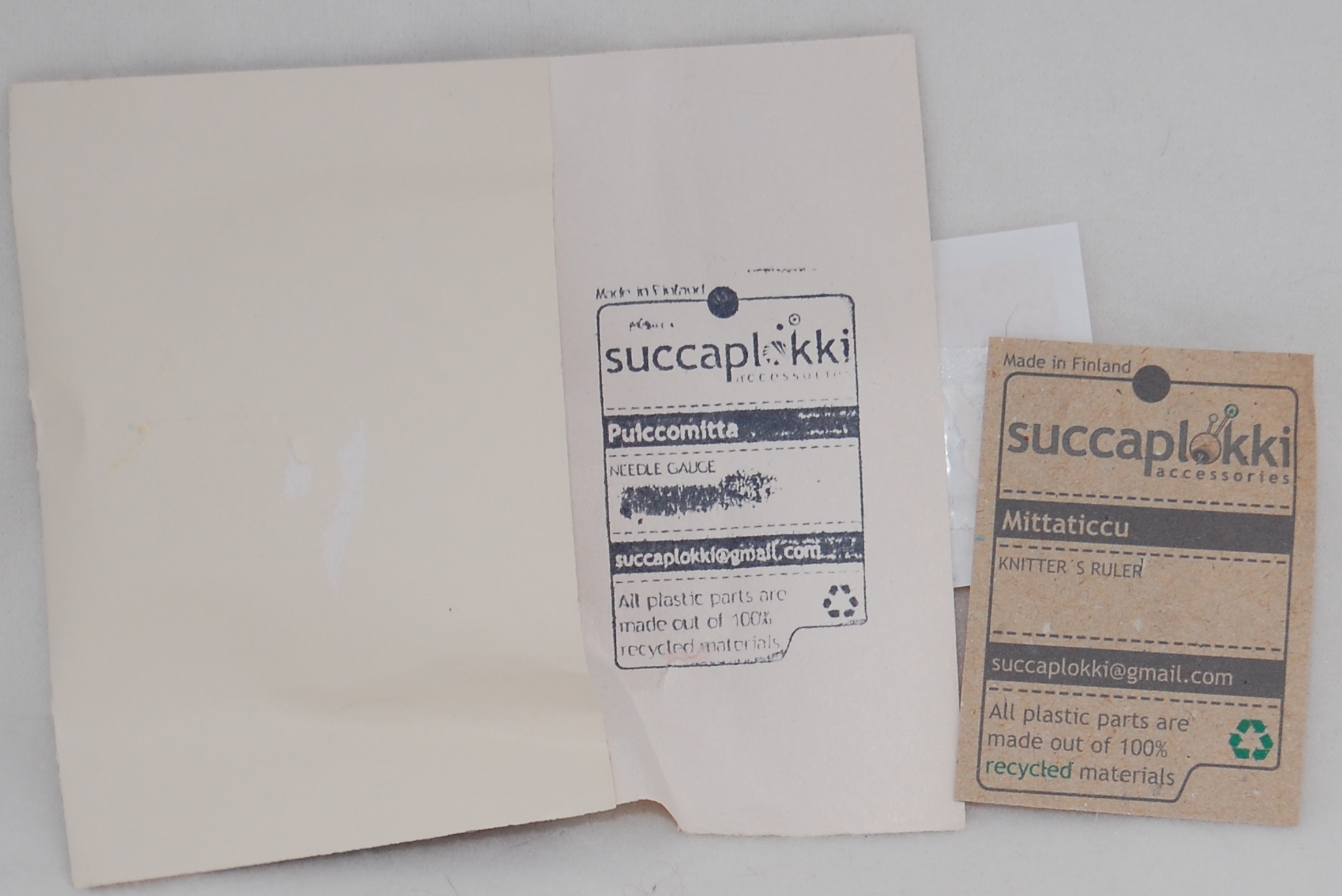 First, there was needle gauge that I have swooned over ever since I first saw one somewhere.  It’s made by Succaplokki accessories out of recycled plastic.  The post it note on it said, “Since you are living in Europe you should get used to the metric system.”  (Just an FYI, I’ve always prefered the metric system for needles and hooks.  It just makes more sense!)