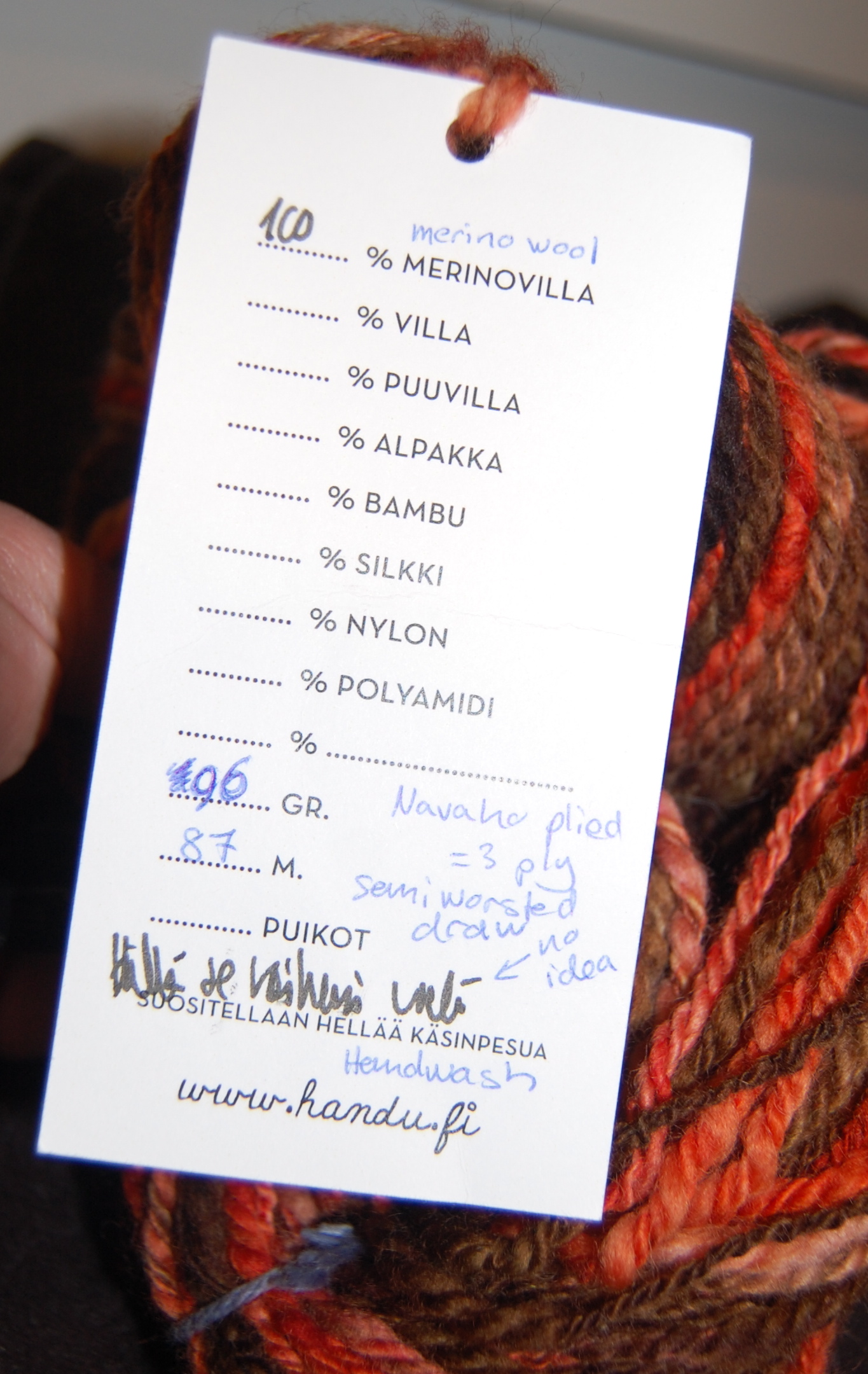 I love the tag that came with it.  I think that the dyer made it so that when you finished making the yarn, you could reuse the tag to tell about it.