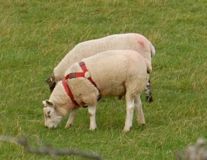 We saw this handsome man and wondered about his halter. Is this for marking the ewes that he has bred?