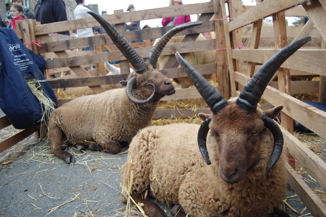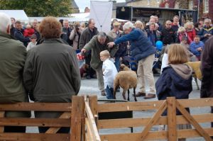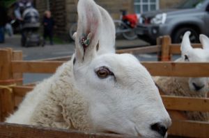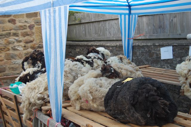 The next day was the Masham Sheep Fair. V’s local spinning guild had a coach that was going for the day which we met in a nearby village. All of the people on it were quite nice and it was relaxing to get to actually ride through the Yorkshire Dales for once, rather than driving! We arrived in Masham around midday and we immediately jumped into the fray. The first port of call was the fleece sale. Both V and I looked over the fleece and walked away empty-handed. The selection looked throughly picked-over and though there were a few interesting breeds left represented, they were in such a condition that we passed on them.