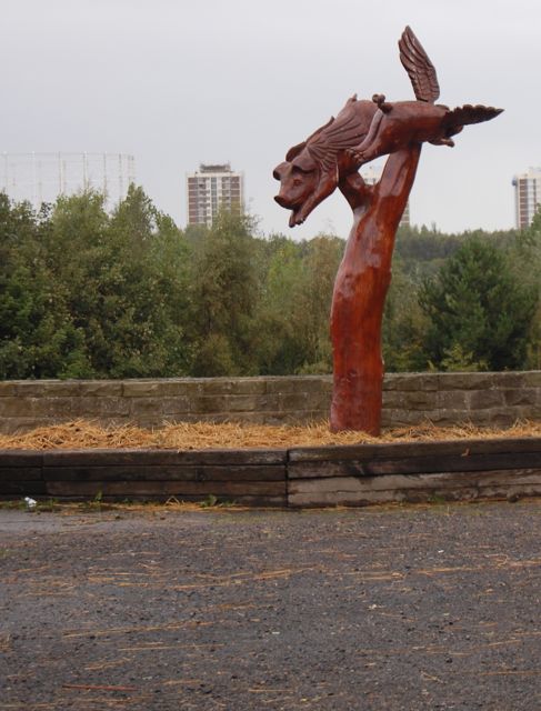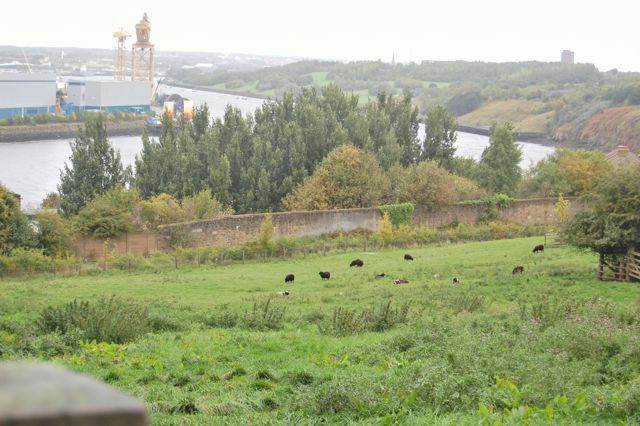 The next day I got-up with V and drove into the suburbs of Newcastle. She got me sorted for the Metro and she went off to work and I went off exploring. First up was the Bill Quay Community Farm. It is a city farm plopped between the river and quite a lot of houses. I didn’t have any trouble finding it and had a good wander around. They didn’t have a lot of different breeds of sheep there, some Jacobs and Hebridean but the whole farm was charming with lots of sculpture and imaginative reusing of materials.