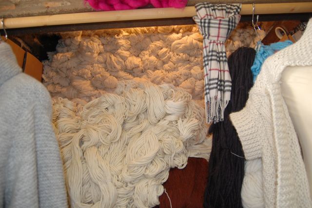 I got a few skeins of that luscious bulky chimney yarn as well as a few tiny little balls of sock yarn.