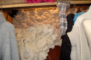 Back at V’s house, we set to sorting her fleeces out on her deck. She has the ability to find fleeces far and wide thus had quite a backlog of fleeces awaiting skirting, sorting and logging into her fleece logs. By bedtime we were both smelling even more sheepy, but had gotten a fair number of fleeces squared away.