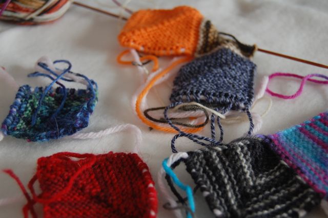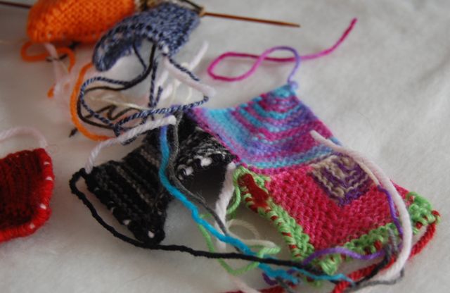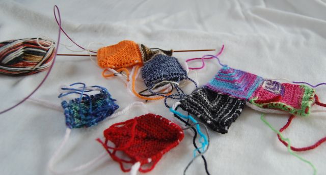 The beginning project is sort of a long-term one in my mind. It is a sock yarn blanket like this one. I got some leftover sock yarn from my friend Tini awhile ago and I’ve been finding odds and ends for sale various places. Here’s where I am so far (admittedly not that far!)
