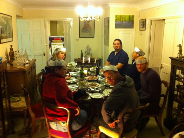 We went over to the neighbors for Christmas dinner, which involved a great deal of alcohol.  This is something that the hubby and I picked-up on last year when listening to radio programs and everybody was making jokes about being pissed on Christmas (pissed as in the British meaning of drunk not the American meaning of angry [or, you know, actual peeing]).  I think that this may go a long way to explaining why Santa rides through the village in a sleigh, mounted on a wagon, pulled by a lawn tractor ending-up in the pub.  Yes, you read that right, the Ivinghoe Aston Santa goes to the pub on Christmas, I mean, where else would Santa go after delivering all those presents?!?!?  Anyway, we had a wonderful time with our neighbors and their family.  The highlight of the night was when I got a trivial pursuit question about what cheese is from the  village of Hawes and I let out a whoop (I had had a few at that point) as I actually knew the answer to it!  (It’s Wensleydale Cheese before you all hit the Google).  Before y’all totally roll your eyes, I had spent most of the night listening to them rattle off obscure (at least to me) British historical facts, so the fact that I, an American knew the answer and that they, a room full of well educated Brits didn’t, was quite exciting to me.