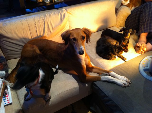 Kali is nervous about the couch as the sectional tends to push apart at that end and she's ended-up on the floor a couple of times already!
