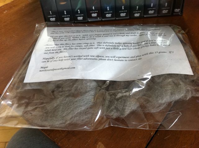 Some alpaca fiber from the Phat box with the X-Files set behind