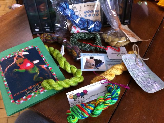 Lots of mini skeins of sock yarn (perfect!) from the Phat fiber box