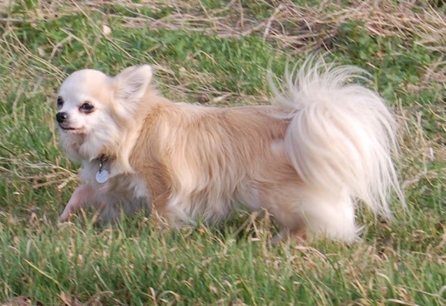 Don’t let the subject’s small size fool you, this is among the most dangerous members of “The Family”.  What she lacks in stature, she makes up for in ferocity.  This bitch has been spotted going after horses screaming threats at the top of her lungs.  Is considered Sarah Jane’s bodyguard and can almost always be found (literally) in her shadow.  Small size means that escape is a prime problem with this member.  Transplanted here in 2009 from Florida, this little dog is a survivor having lived through hurricane Katrina in Mississippi, her birthplace.