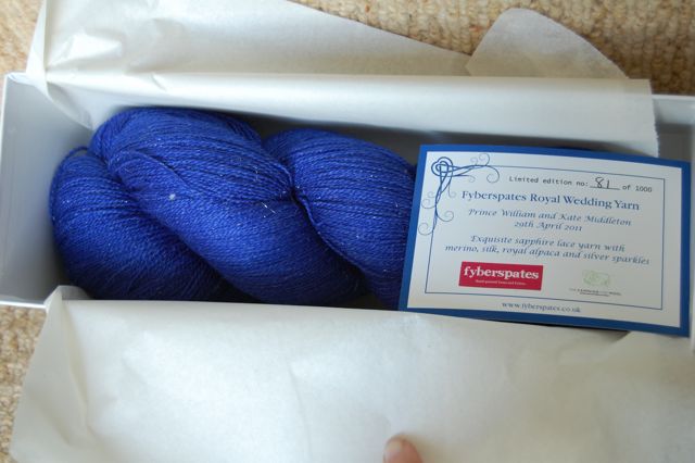 I got #81 out of 1000 of the Fyberspates Limited Edition Royal Wedding Yarn! This is super cool because, as Veronica explained to me while at Wonderwool Wales, 1981 is the year that Charles and Diana got married. She managed to score #429 (4/29 aka April 29th, the big day!). So yeah, we were/are pretty dorky, but it is still cool! And, it’s a super pretty yarn to boot! I’m not sure if I am actually going to knit with it or just keep it as a souvenir of the wedding. Way nicer than a mug in my opinion:-)