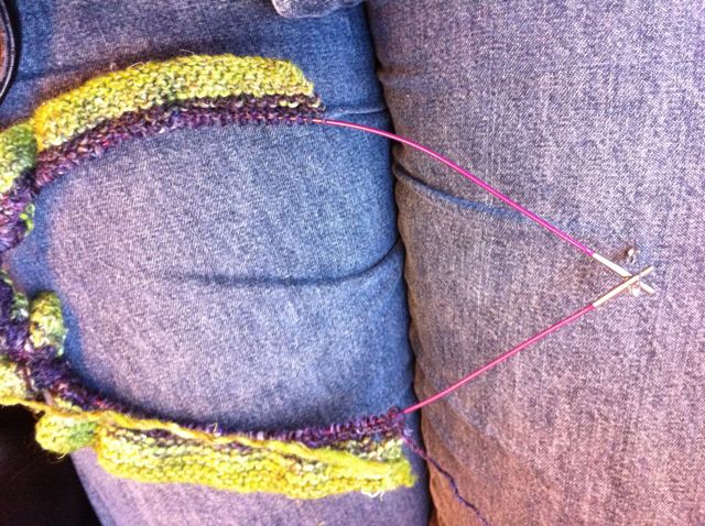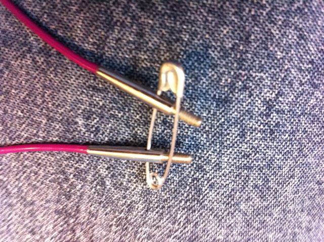 On the way home, I “figured-out” a way to get the knitpro interchangeable needles off the wires to go through security without having to find the little caps for the ends (which I didn’t have handy) for my wip (which is Marleen’s kaleidoscope vest just so you know) by using a simple little safety-pin.