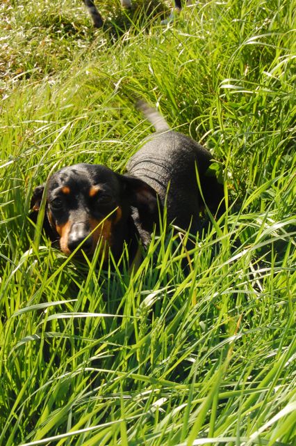 The grass is already getting deep, to the point that we are starting to worry about losing Weezy in it. She doesn’t fret about it but we do when we suddenly can’t see her anywhere. Here she is in some grass that is just about as tall as she is.