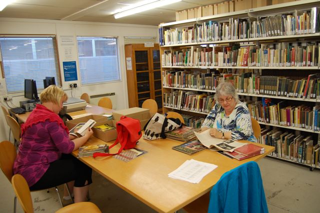 The next day we drove down to the University of Southampton’s Knitting Reference Library. This was seriously cool, as they have a large collection of knitting books and patterns from about as far back as written knitting patterns go. Barbro did an excellent blog post about it here but I also took some pictures.