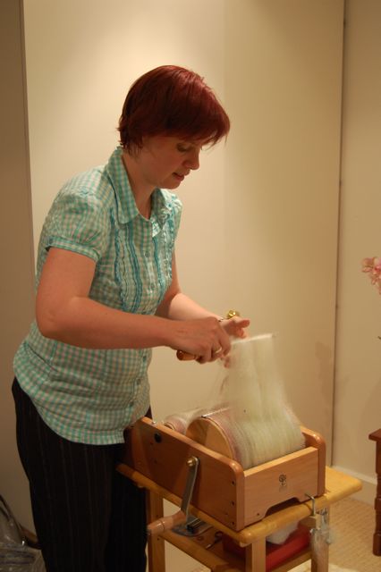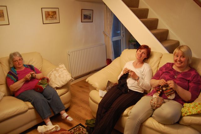 Malin, Barbro and Tini all flew to London to join me in an adventure up to the Lakes District to attend Woolfest in June (BTW, there is a picture of the 4 of us in the photo gallery on the Woolfest site:-)). The day that everyone flew-in was pretty laid-back. Lots of knitting and a little bit of drum carding!