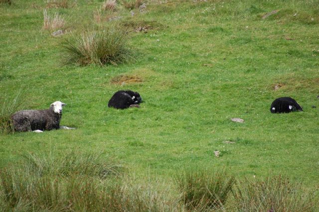 When we got back to the cottage, Malin realized that she had dropped her Holden shawlette on the ground during our Herdy stop. So, into the car Malin and I went to rescue the shawl. However, we decided to take a different route back that I had vetoed the first time it was suggested by the GPS unit as it just looked kinda crazy. It was. Malin was taking pictures of it all and even did a video at one point to capture the full insanity of it. To say that it was some of the more interesting driving that I have ever done (and I have done some interesting driving in my life!) would be a gross understatement. There was a warning of a 30% incline and decline on this road before we even got to the fun parts:-) This road over 2 mountain passes was a single lane track for the vast majority of it with Herdwicks roaming on all sides and water flowing freely to boot. There were numerous times where I wasn’t sure where the road went because we were doing 30% up and a corkscrew at the same time. Oh, and since we were on top of the mountain was really, really foggy at some points! I didn’t take any photos (that would have been suicide [no rails between us and 100′ drops]) but Malin did and when she has a chance to sort through them and send me some, I will post them here…