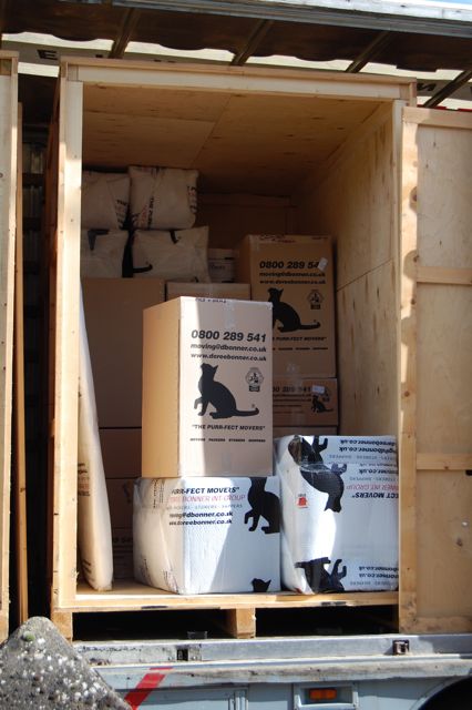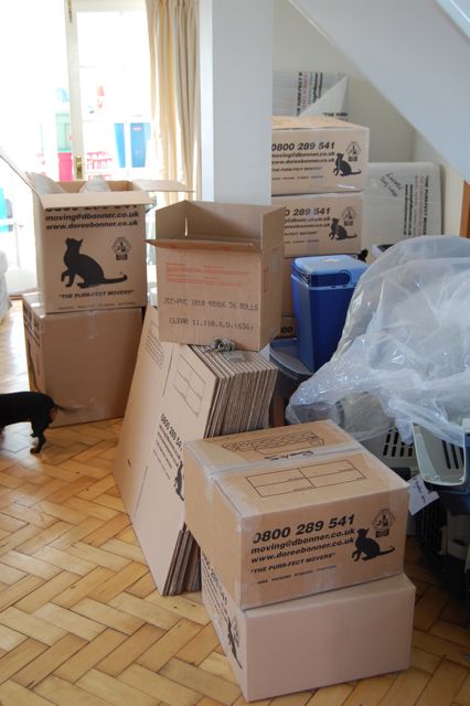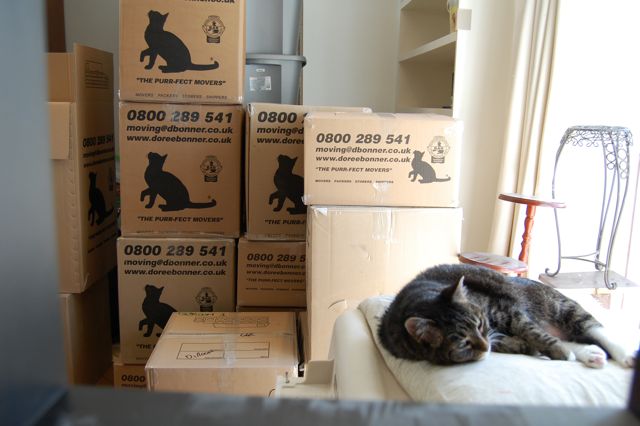 At 9am this morning my house was invaded by 5 strong men armed with packing tape and giant rolls of bubble wrap with cats on it.  The moving crew had arrived.