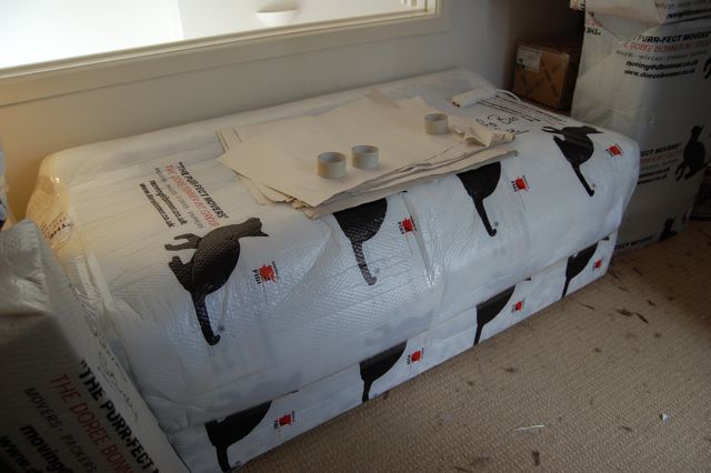 12:15pm The sofa has been wrapped in bubblewrap. A few braincells popped with that one…