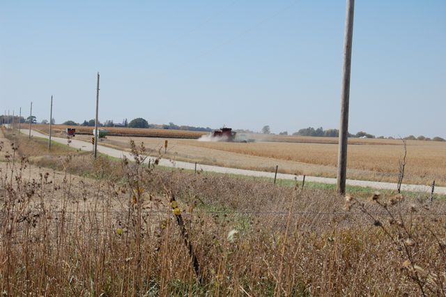 Autumn in Iowa is… quirky. It can go from the 80’s to below freezing in a day and does so often enough that it’s not commented on as “strange weather”. There isn’t as much fall color here as there is in other places I’ve visited. It is definitely not Rhinebeck, but few places are! However, we do have the harvest, which is oddly fun to watch. In my opinion, it is way more interesting than the football that everyone seems to get all excited about this time of the year. They even have stats on the evening news like they do for the sports as to what percentage of the crop is harvested, etc.