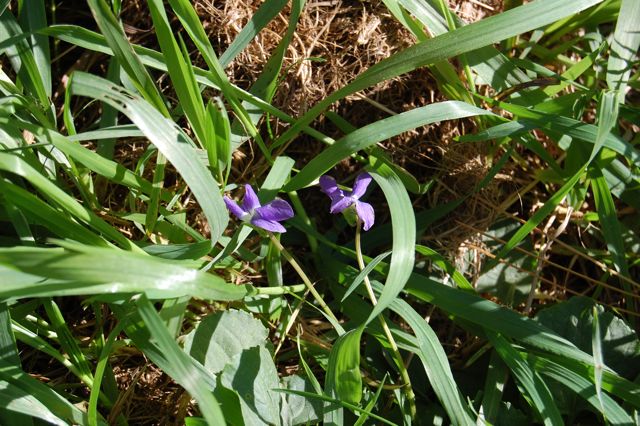 There is still a little other color around. I found a few wild violets blooming still. These little plants with their heart-shaped leaves have mostly taken over the lawn here and I don’t think anyone is complaining. They make a lovely carpet of purple in the spring and summer. I used to pick handfuls of these when I was a child and display them in juice glasses on the kitchen table.