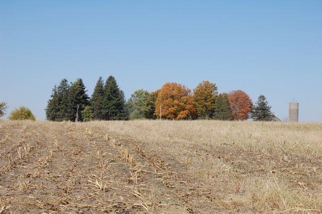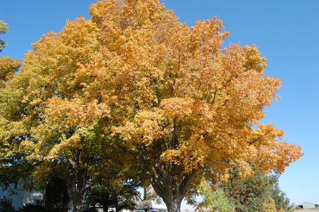 Autumn color in Iowa is more subdued than in other parts of the county, but it’s still there. These are the sugar maples in front of our house from out in the field.