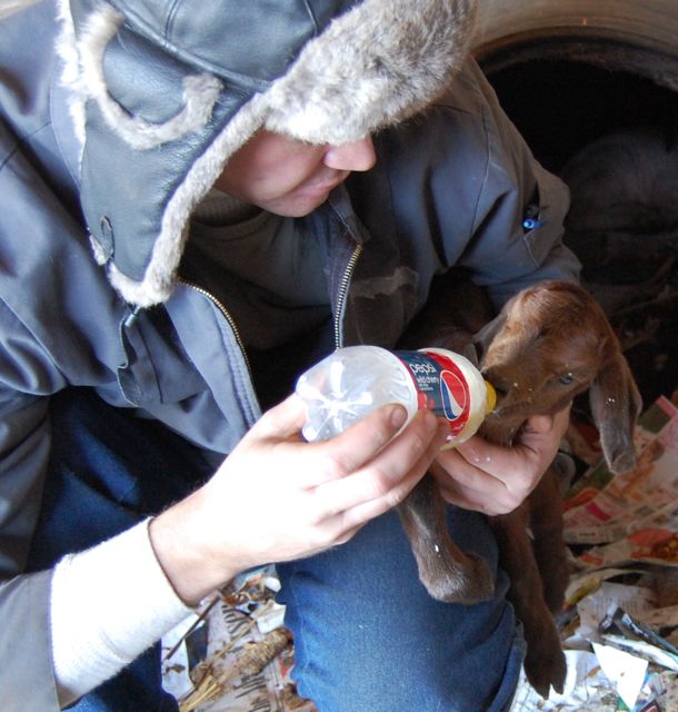 The reason that I am giving you pictures of my brother feeding is that it is REALLY difficult to take pictures of yourself when you are feeding a newborn goat. Go figure.