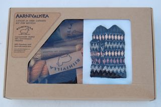 Near the bottom of the box there was an amazing kit from Riihivilla yarns.  This is a Finnish yarn company that specializes in using Finn sheep wool and using only natural dyes to dye it.  I bought a skein of their sock yarn when I was in Helsinki with Malin a couple of years ago and it is lovely, lovely yarn.  (BTW, the instructions are both in English and in Finnish in case you were wondering!)