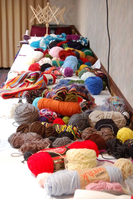 There was also a charity knitting area in the back.  Folks brought bits and bobs of acrylic yarns that they had around the house and worked on some scarves that were started.  At the end of the weekend, these scarves are going to be donated to a local shelter.