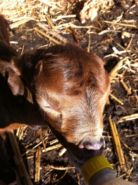 Red is starting to get some darker patches on her back and all of her hooves have them as well. It's sort of like socks on a cat, only the opposite.