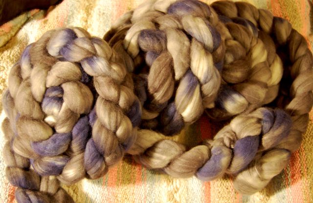Finally I get to the spinning. I am doing something that is probably a tad on the crazy side (not fully over there, just edging that way!). I am spinning the lovely merino/cashmere/nylon blend from BugSnugger that I picked-up at Sticks and String. I got three-four ounce braids.