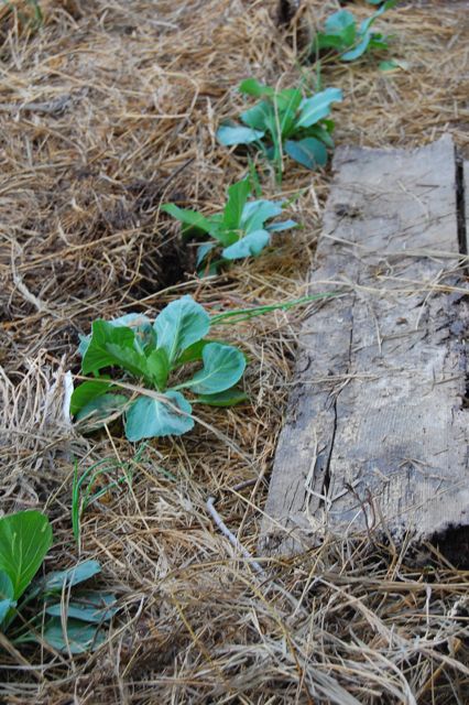 The old board is there because that was a particularly muddy spot under the mulch for a while. No big horticultural secret or anything.