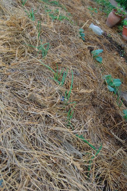 Do you have any idea of how hard it is to take pictures of onion plants? Not the most photogenic plants in the world, especially when mulched liberally!