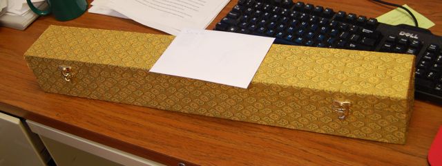 My day started normally enough until I got to the office where a very interesting box awaited me on my desk. Given it’s dimensions, I was a tad apprehensive that my day was going to devolve into something Kill Bill-esque…