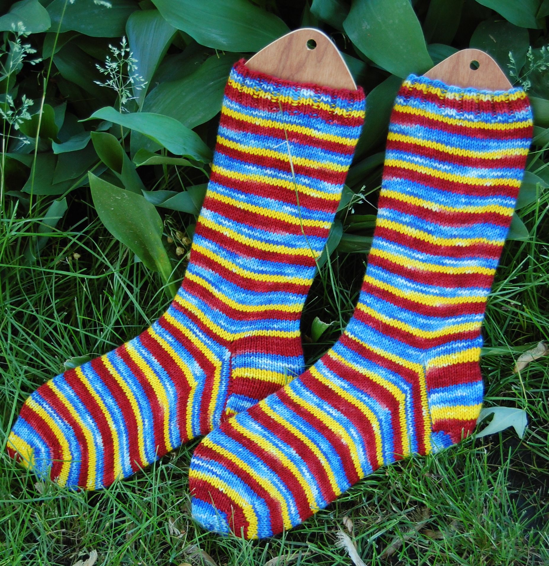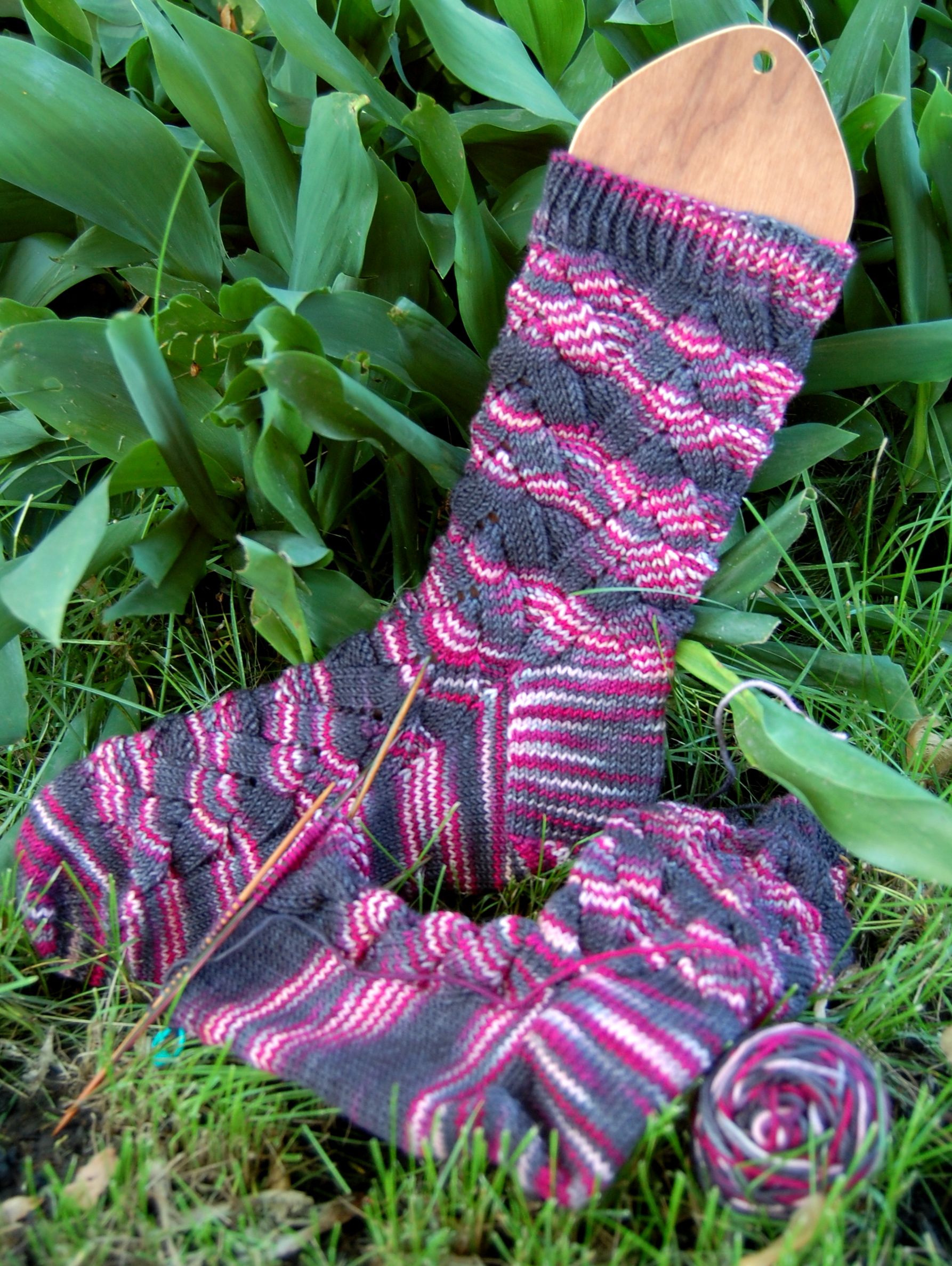 Yes, these are my first Monkeys. Knitted mostly on the way to and back from Columbus, Ohio for a conference. Done in Socks that Rock lightweight, unknown colorway (mill-ends grab-bag).