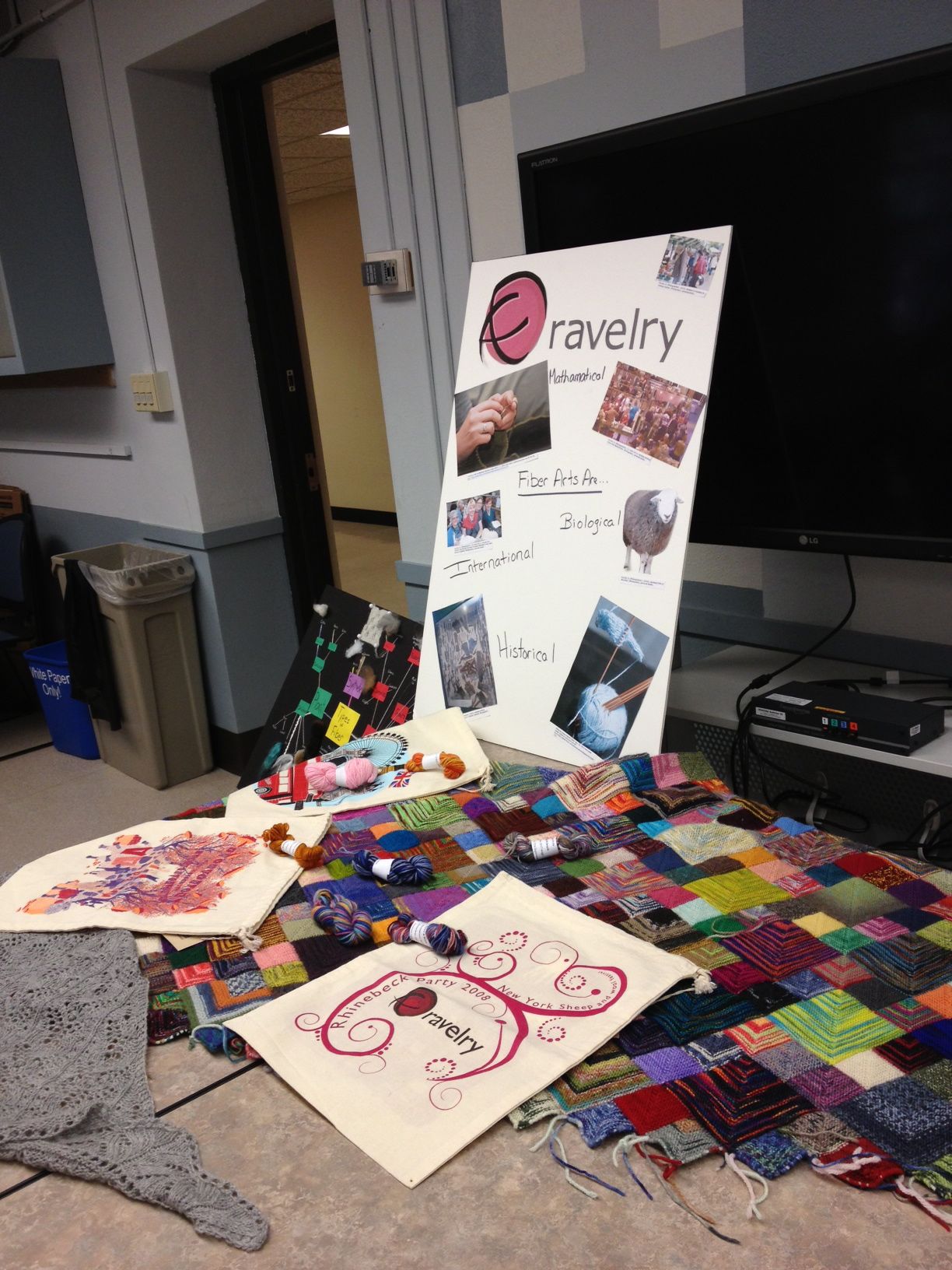 Amongst all of this, I actually did some school work! One of my favorite assignments this past semester was a presentation I did for a technology class on how to incorporate Ravelry into the classroom. I had fun making the display:-)