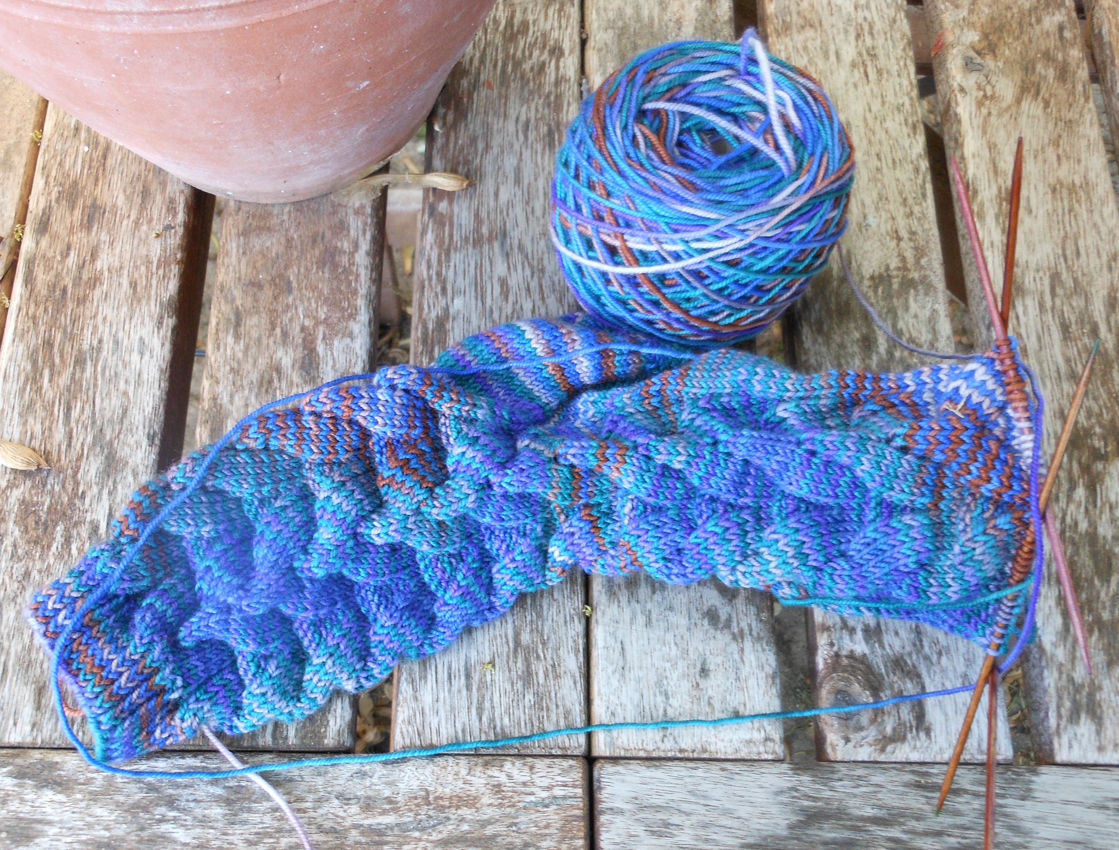 So, yeah… I get the addictive nature of the Monkey socks now. I already want to cast-on the next pair and I’m not done with this pair yet! It’s sort of like when I was still smoking (yes, I used to smoke. I quit. It’s bad for you, don’t start it!) when I would want another cigarette before I had even finished the one I was smoking. Knitting Monkeys is kinda like that…