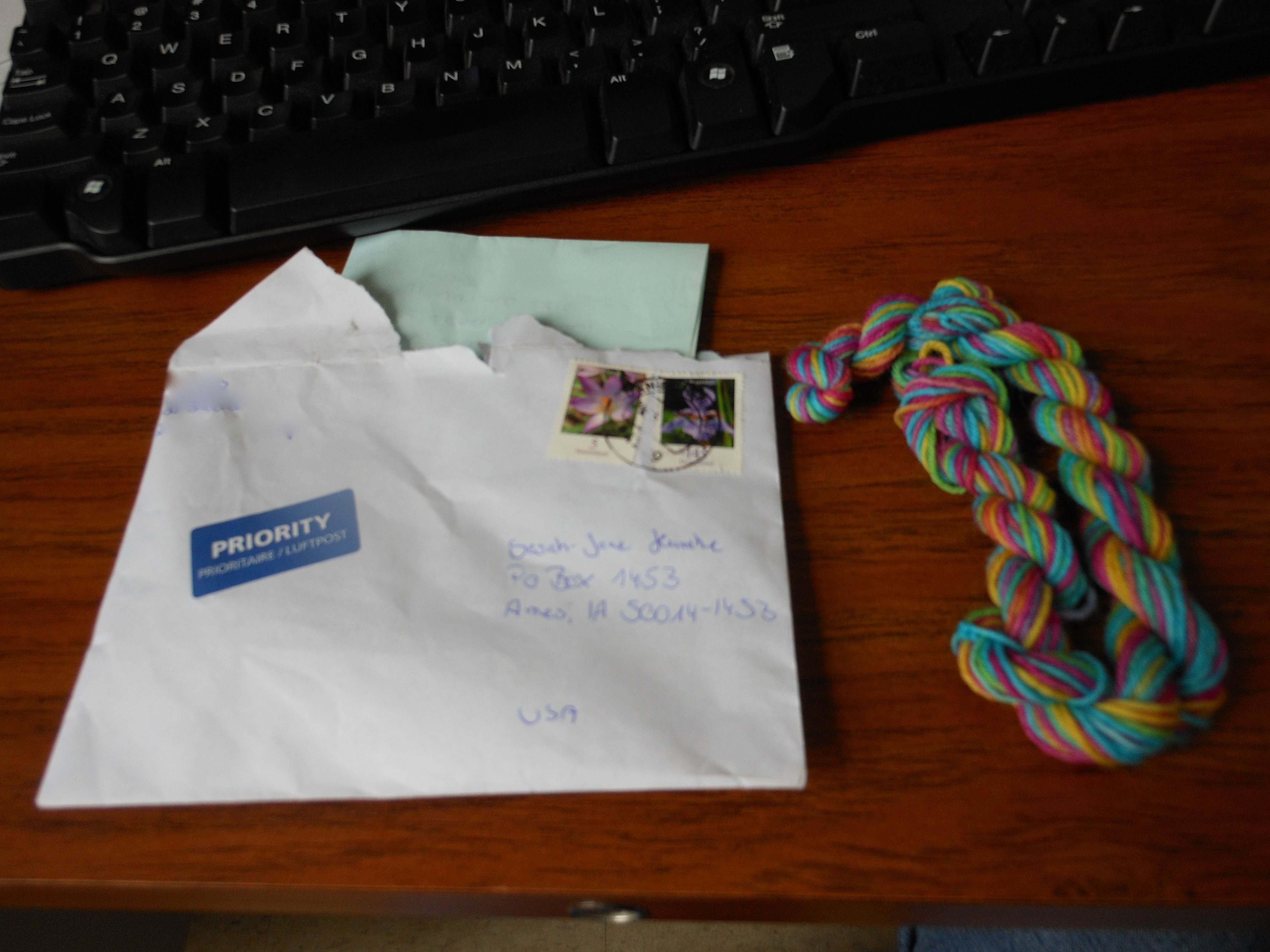 A letter from Tini and a little skein of sock yarn! Yay for the sock yarn blanket!