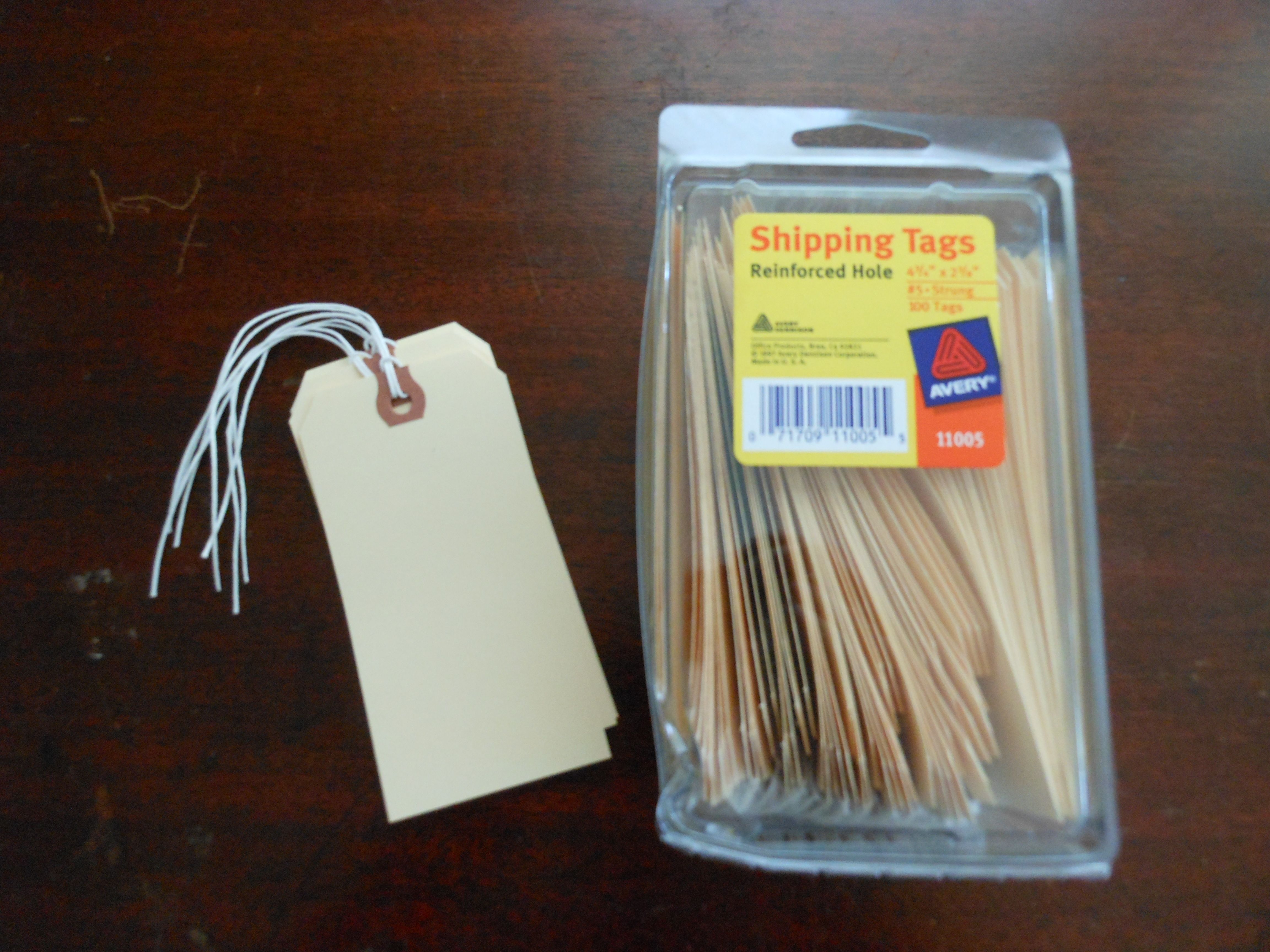 I found these shipping tags a while ago at an office supply store. They are durable and large enough to contain all the information I need to put on them.
