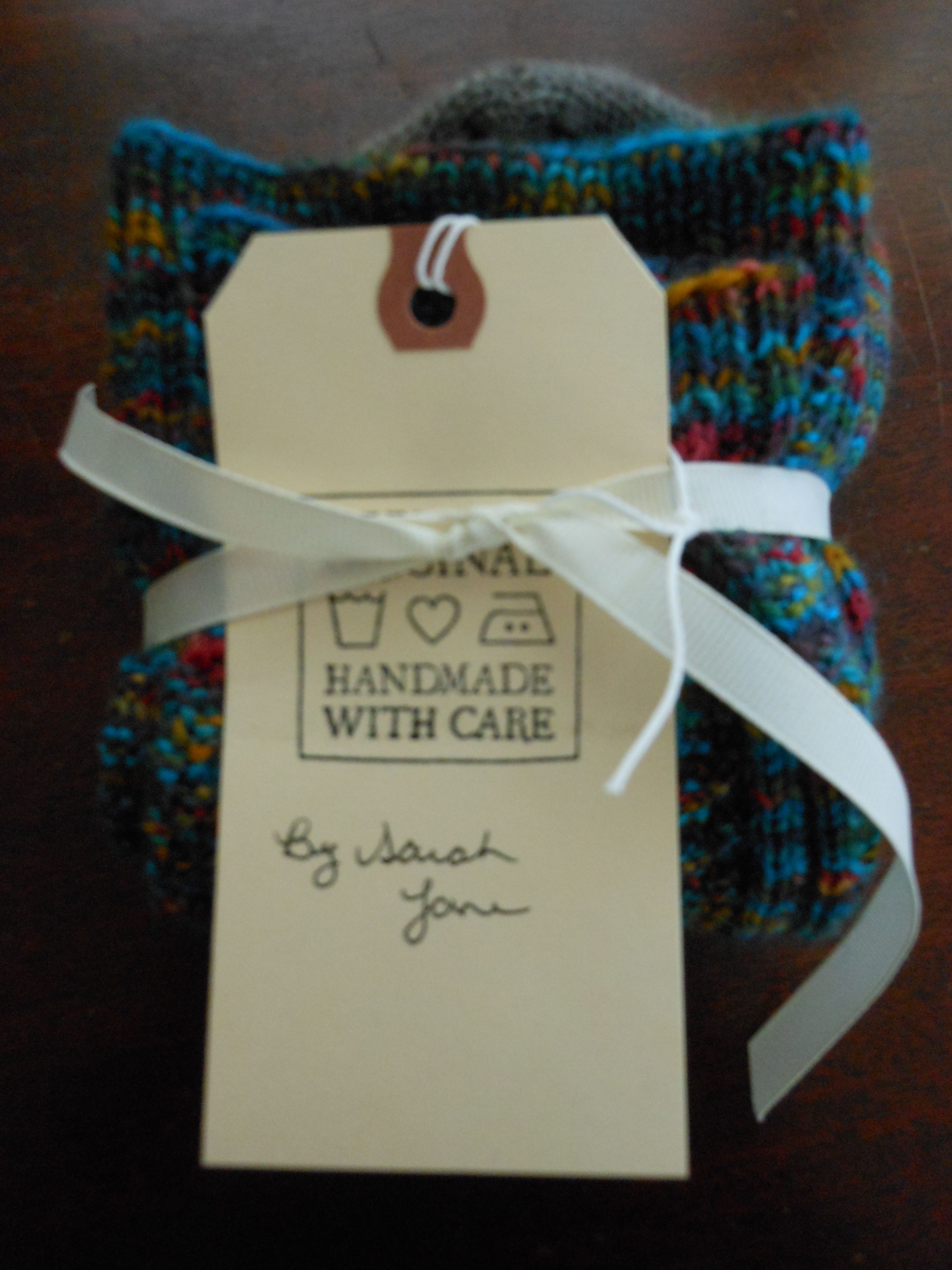 One of the things that I have come up against when giving handknits as a gift is how to express the care and feeding of the item to the recipient without making the birthday or baby card sound like a do’s and don’ts list. Given that often cards quickly get separated from the gift, this is one way that I use to make sure that the knits that I give receive the care that they require.