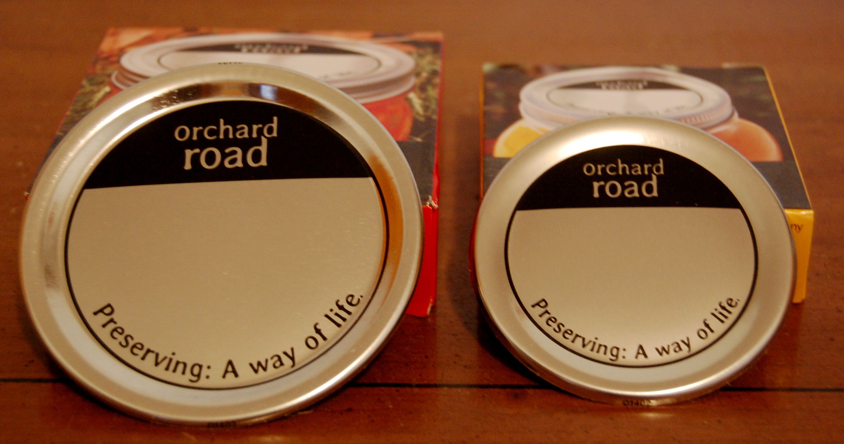 Orchard Road seems to be making only jars and lids/bands at this point, compared to the mega company Ball (a subsidiary of Jarden Home products which also owns Kerr and Golden Harvest brands of mason jars) that makes all sorts of canning and cooking equipment as well as publishing numerous books.  I decided to do a head to head comparison of the two brands to see if there was much of a difference.